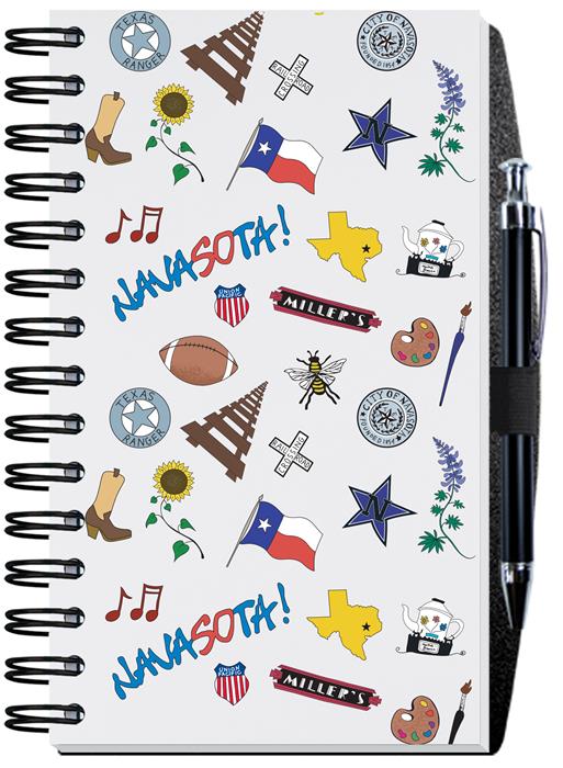 Covers: glossy, full color image on durable chipboard front, black heavyweight pen safe back with elastic pen loop, an elastic closure/bookmark and free Dynamic Pen.