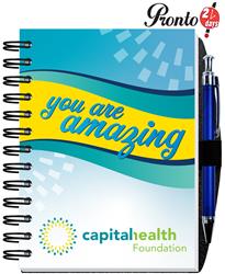 5" x 7" Pronto! Full Color Journals with Pen, ships in 2 days, 80 recycled lined sheets