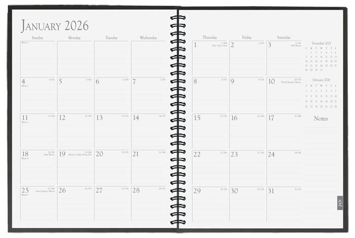 Size 5" x 8", 14 month planner with heavyweight covers, weekly and monthly calendar views.