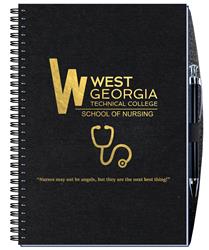 Hybrid 14 month Academic planner and journal in one. Features a sturdy, heavyweight cover foil stamped in one standard color, with pen safe back and free dynamic pen.
