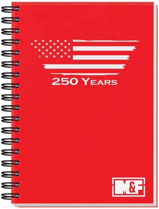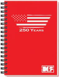 Journal with durable thick 50 pt. cover stock. 80 inside sheets, recycled 60 lb. white offset. Recycled symbol printed in lower right corner. Logo and contact information printed in black on front of each sheet. Back of sheets are blank. 3 year calendar insert included in the back of each journal. Wire-O bound on left side in black. Name and logo on every sheet at no cost on as few as 200 journals. 7" x 10".