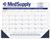 Please Note: DDP5D is OUT OF STOCK for 2026. Consult factory for orders of 1000 or more with a 15 day production time. A 13-month calendar desk pad keeps your message working all year long! Months, dates, and bottom reference calendar are preprinted in blue and gold on 60 lb. white offset paper. Padded at top with 13 sheets to a pad, chipboard back and two corners at bottom of pad. 12 month reference calendar standard at bottom of each layout with company logo and information printed in designated imprint areas in ONE standard color. Corner colors: Ink Black, Naval Blue, Chocolate, Thunder Gray, Ruby Red, Evergreen, Burgundy or Cobalt Blue.