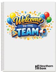Q2 SALE...EQP - Expires 6/30/26. *New Orders Only, Cannot be combined with any other offer. Design for impact in 4-color process on this economy composition notebook. 10 pt. white cover coated on one side and a 30 pt. chipboard back cover, white on one side. 50 perforated sheets inside, 18 lb. tablet bond, standard ruled on both sides with blue rules and red margin rule. Notebook is 11/32" wide ruled and coil bound on 10 1/2" side. A promotional tool that is the very model of utility and effectiveness.