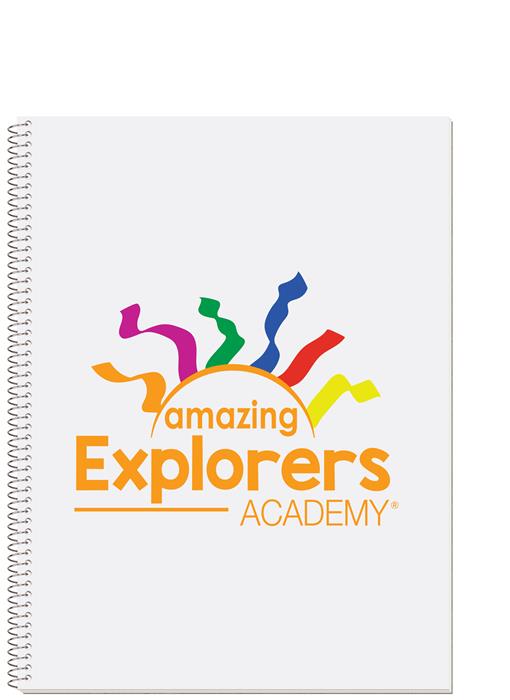 Versatility and design come together in this economy composition notebook printed in 4-color process. 10 pt. white cover coated on one side and a 30 pt. chipboard back cover, white on one side. 50 perforated sheets inside, 18 lb. tablet bond, standard ruled on both sides with blue rules and red margin rule. Notebook is 9/32" narrow (college) ruled and coil bound on 11" side. NEW: Choose from our stock backgrounds and submit company logo to imprint. An education market best seller!