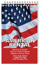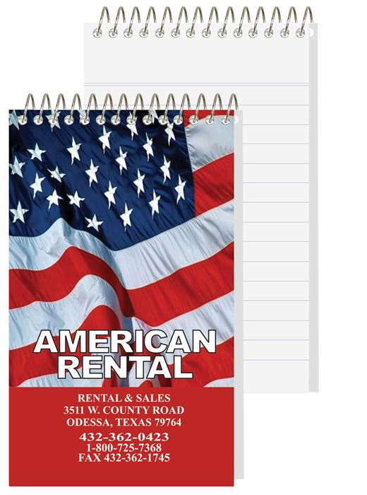 Coil bound pocket notebook with 4-color process imprint for a brilliant logo. White 10 pt. cover printed with a clear coat on outside front cover. 50 sheets inside, 18 lb. tablet bond paper with light blue rules on both sides and narrow rule spacing. Coil bound on 2 7/8" side with square corners. NEW: Choose from our stock backgrounds and submit company logo to imprint. Use at home, at work, traveling or at the grocery store. Great for journalists, too, or just any obsessive note-taker.