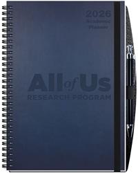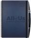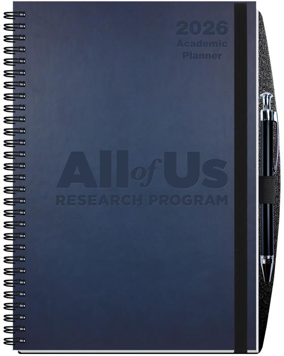 New! Hybrid 14 month academic planner and journal in one. Front cover features a supple leather-like material bonded to heavyweight board with blind deboss imprint. Pen safe back cover features heavyweight pen safe back with elastic closure/bookmark and pen loop. Free dynamic pen comes inserted in loop. Monthly calendar view with white offset inside sheets printed gray on two sides. Includes 14 months (July - August) followed by 50 journal sheets printed with light gray rules on both sides. Wire-O bound on left side in Black. Pewter or white upon request. Ideal promo for any profession.