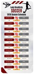 Single-card sports schedules make a memorable, low-cost promo. Gloss-coated, hole-punched, and ready to hang—your logo stays noticed all season.Paper stock is white 10 pt. printed full color with clear gloss coat on one side, submit artwork to size. Hole at the top for hanging.
