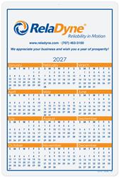 12 month year-on-a-page calendar card. Makes an inexpensive yet distinctive giveaway for any office, classroom, or mom-and-pop retailer. Paper stock is white 10 pt. printed full color with clear gloss coat on one side, calendar printed in black. Choose from our stock backgrounds and submit company logo to imprint. Please specify imprint area position: top, middle or bottom. Hole at the top for hanging. Get a full year of promotion with one product!